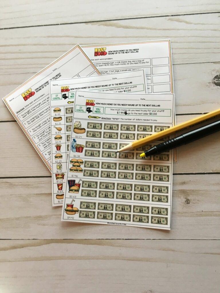 Kids practice rounding up to the next dollar to pay for their Fast Food with this fun and super engaging Real World Math resource!